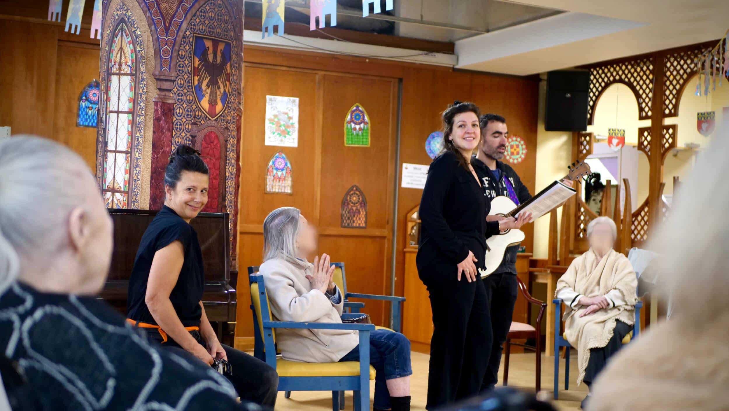 Airs d’opéra, chansons, danse et mouvement accompagnés à la guitare ont invité les résidents à vivre de précieux moments d’émotion avec les artistes.